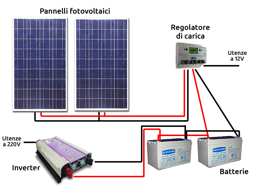 I pannelli fotovoltaici e i cavi in generale possono stare all’aperto e sotto la pioggia/grandine. Gli altri componenti (regolatore di carica, batteria, inverter..), invece, devono stare al riparo dall’acqua, ad esempio sotto una tettoia, o in una scatola chiusa ermeticamente.