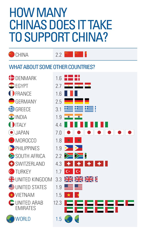 Proprio come le banche tracciano le uscite e le entrate, il Global Footprint Network misura la domanda e l’offerta di risorse naturali e di servizi ecologici. E i dati fanno riflettere. Il Global Footprint Network stima che in circa 8 mesi consumiamo più risorse rinnovabili e capacità di sequestro della CO2 di quanto il pianeta possa mettere a disposizione per un intero anno.