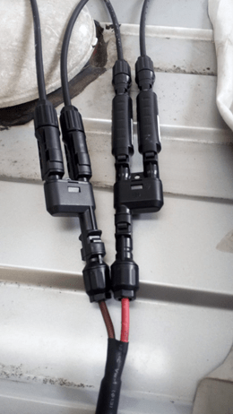 Ovviamente i cablaggi li ho fatti tenendo i pannelli coperti da un telo, in fin dei conti loro sono in grado di cacciare 50 V circa… Non si sa mai.